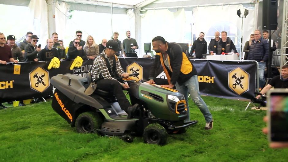 Tim Wiese gegen Jean Pierre Krämer. Wrestler gegen Auto-Tuner. Handrasenmäher gegen Mini-Traktor - so lief das skurrile Duell.