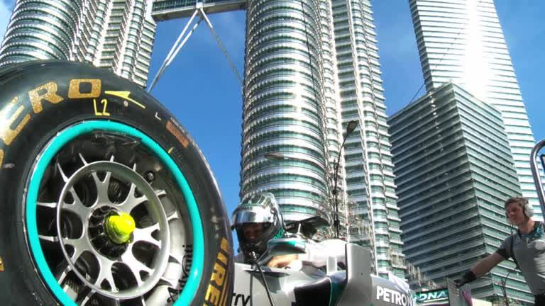 Laureus World Sports Award 2014: Wenige Tage vor der Verleihungs-Gala in Kuala Lumpur sorgt Formel-1-Pilot Nico Rosberg mit einer Cityfahrt für gute Stimmung.