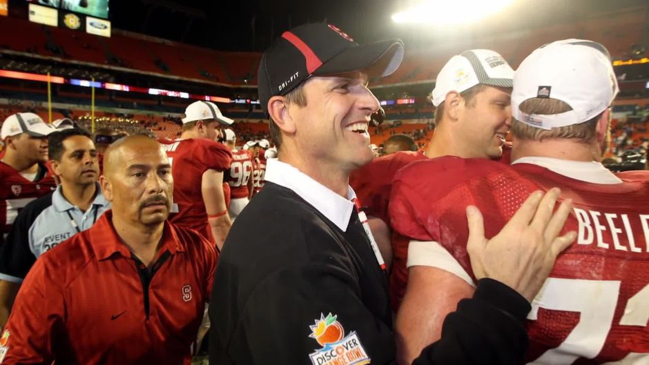Er stand als Coach der San Francisco 49ers bereits im Super Bowl und trainiert nun im College-Football die Michigan Wolverines: Die bewegte Karriere von Jim Harbaugh gibt es hier zu sehen.