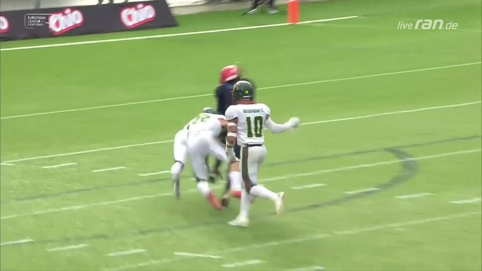 Kurz nach der Führung für die Barcelona Dragons gleichen die Hamburg Sea Devils durch Madin Cerezo aus.