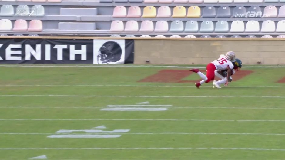 Die Barcelona Dragons erwischen gegen die Berlin Thunder einen perfekten Start. Jean Constant zeigt beim zweiten Tochdown seine Beweglichkeit.