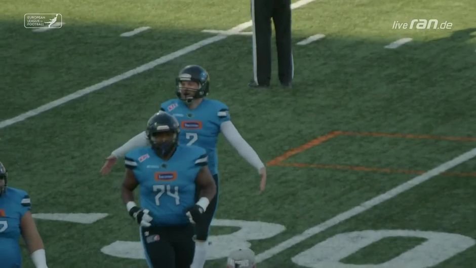 Das ging schnell. Die Wroclaw Panthers ziehen direkt im nächsten Drive gleich und scoren völlig frei in der Endzone.