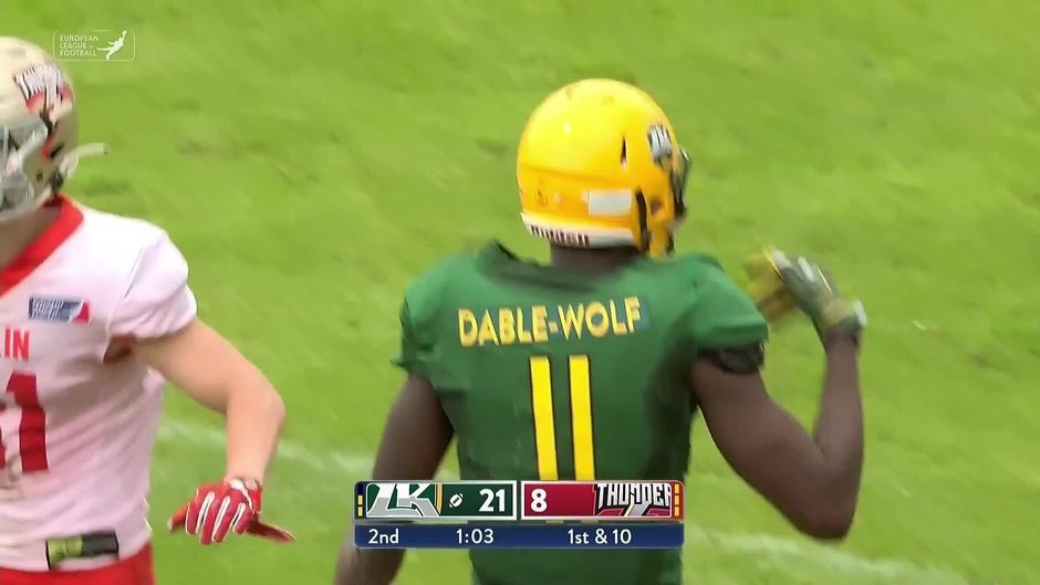 Beim Duell der Leipzig Kings gegen die Berlin Thunder lieferte Ex-NFL-Receiver Anthony Dable-Wolf ordentlich ab. Die Highlights der Partie im Video.