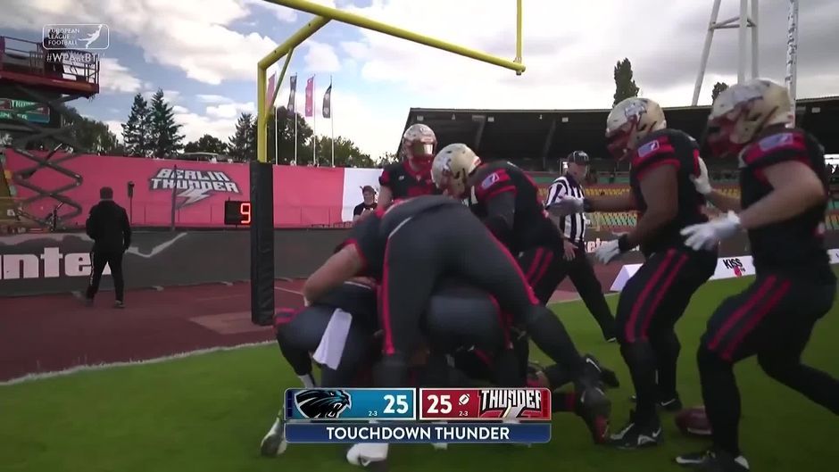 Die Berlin Thunder behalten in einem packenden ELF-Duell gegen die Wroclaw Panthers die Oberhand. In der Schlussphase und Overtime überschlagen sich die Ereignisse.