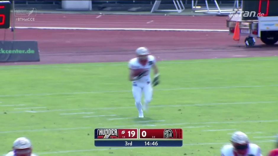 Bis jetzt ist es ein schwarzer ELF-Tag für die Cologne Centurions. Beim deutschen Duell gegen Berlin Thunder schwimmt die Köln-Defense komplett und kassiert mit der ersten Aktion nach Wiederanpfiff prompt einen Kickoff Return Touchdown.