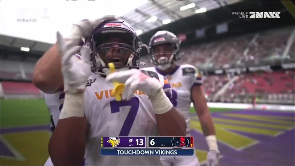 Die Vienna Vikings haben immer wieder die perfekte Antwort parat: Ein langer Pass von Quarterback Erdmann - und die Vikings legen den zweiten Touchdown nach.