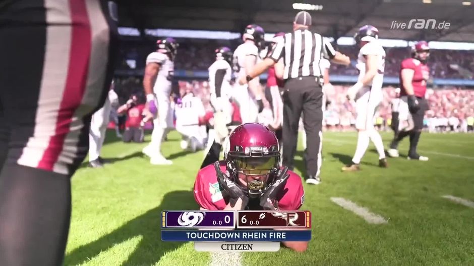 Auch wenn der Extrapunkt im ersten Versuch noch daneben geht, eröffnen die Düsseldorfer mit einem Touchdown die Partie gegen die Frankfurt Galaxy.