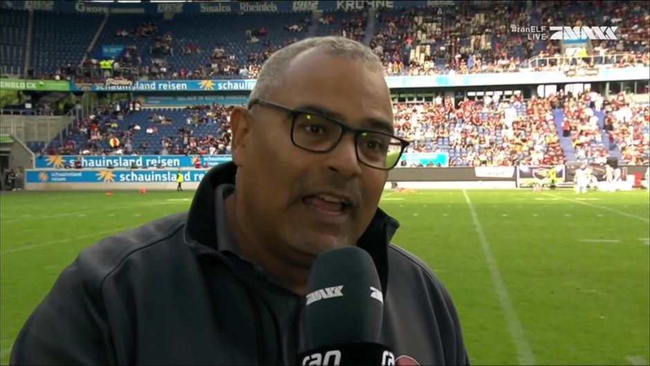 Der General Manager der Cologne Centurions schätzt am ran Mikrofon die Lage der ELF in der momentanen Situation ein.