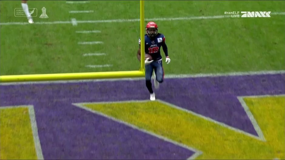 Die Hamburg Sea Devils melden sich im ELF Championship Game zurück - zum Ausgleich reicht es aber nicht. Ceesay mit dem Touchdown-Pass auf Jordan - aber dann sind die Vienna Vikings beim Extrapunkt zur Stelle.
