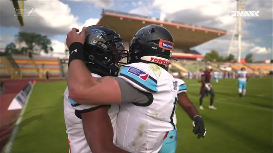 Last-Minute-Punkte für die Wrocław Panthers. Nach einem überragenden Catch verwandeln die Panthers den Touchdown und im Anschluss sogar die Two-Point-Conversation. Damit ziehen sie mit Berlin Thunder gleichauf und das Spiel geht in die Overtime.