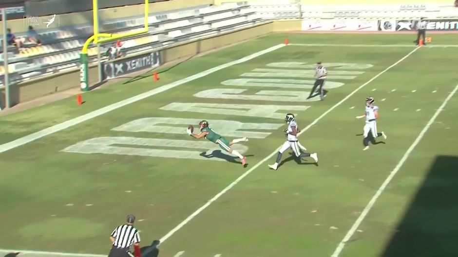 Die Barcelona Dragons dominieren das Spiel bisher und lassen den Stuttgart Surge keine Chance. Nach einem langen Pass springt Wide Receiver Kyle Sweet und setzt zu einem wunderschönen Diving Catch an.
