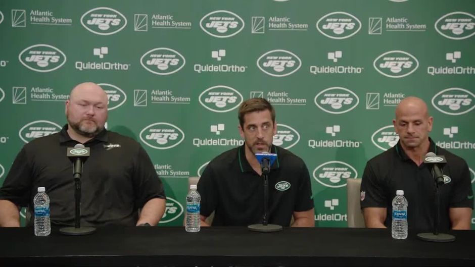 Aaron Rodgers erklärt auf der Pressekonferenz, warum er sich ausgerechnet für die Jets entschieden hat.