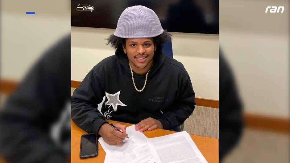 Devin Bush sorgt bei seiner Vertragsunterzeichnung bei den Seattle Seahawks für viele Lacher - Grund ist vor allem seine XXL-Kopfbedeckung.