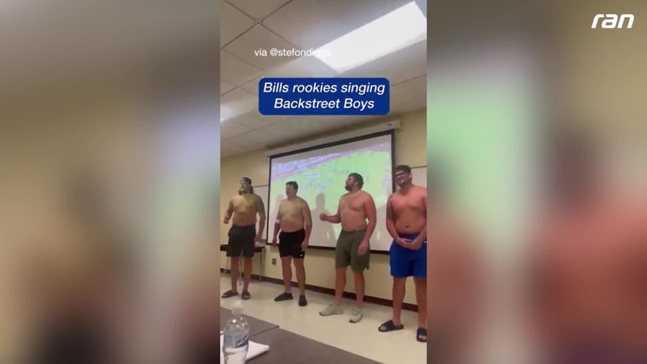 Die Rookies der Offensive Line bei den Buffalo Bills sorgen im Training Camp für gute Laune und tragen ein Lied der Backstreet Boys vor.
