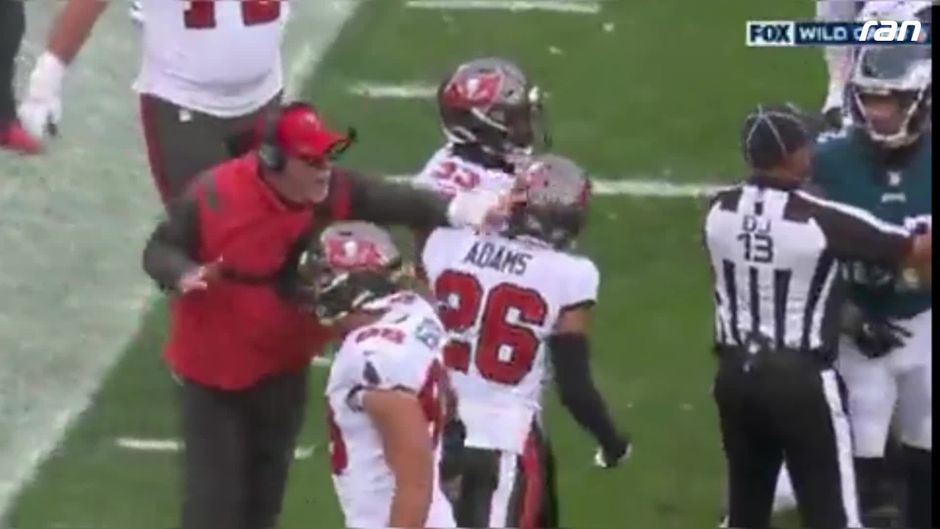 Buccaneers-Coach Bruce Arians schlägt seinen Spieler Andrew Adams und muss dafür eine 50.000-Dollar-Geldstrafe an die NFL zahlen. Sein ehemaliger Spieler Antonio Brown reagiert mit Häme auf die Szene.