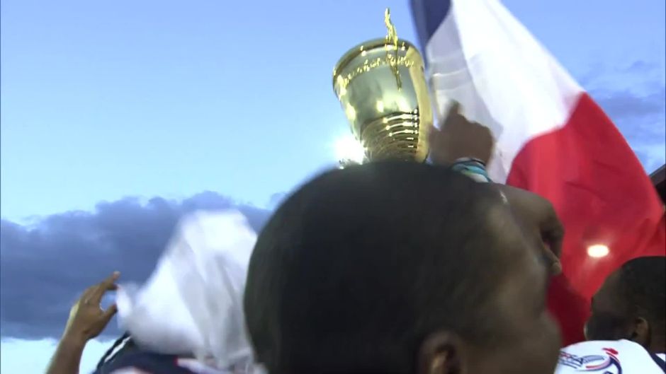 Frankreich ist Europameister 2018 im American Football und holt sich verdient den Pokal ab. Dazu gibt es ein überwältigendes Feuerwerk.