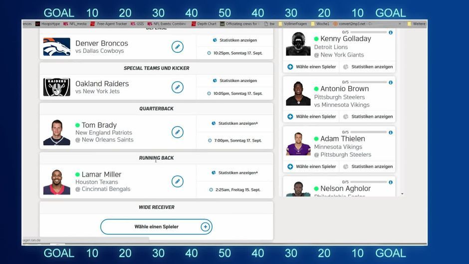 Sebastian Vollmer verrät beim #ranNFLMagazin "Coach's Corner" sein NFL Fantasy Team und erklärt seine Aufstellung. "Coach's Corner" läuft jeden Dienstag um 22:30 Uhr bei ProSieben MAXX und im Livestream auf ran.de.
