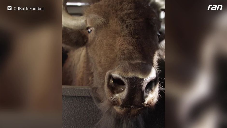 Die NFL-Legende und jetziger Coach der Colorado Buffaloes Deion Sanders trifft das erste Mal das Maskottchen seines neuen Klubs: Ralphie der Büffel!