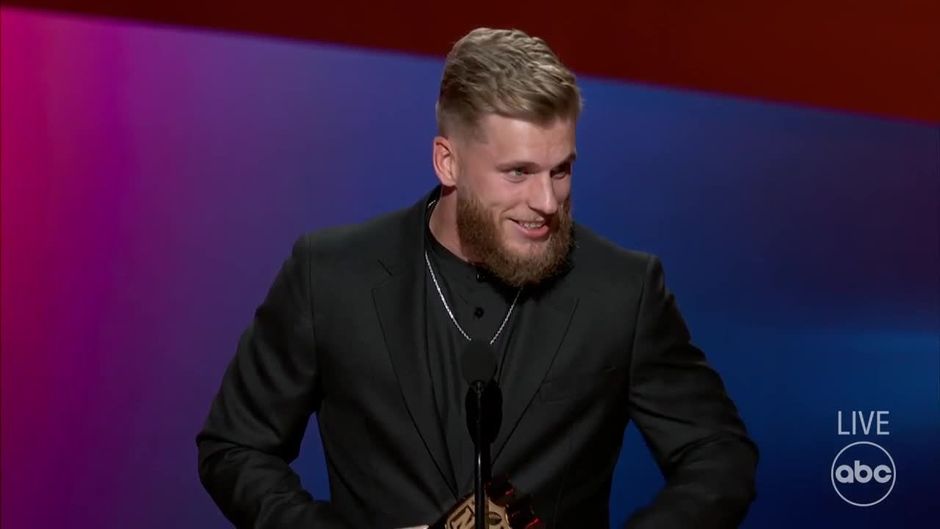 Cooper Kupp, aktueller Spieler bei den Los Angeles Rams, gewinnt den Award "AP offensive player of the year". Er bedankt sich bei Gott, den Teamkollegen und ganz besonders bei seiner Frau.