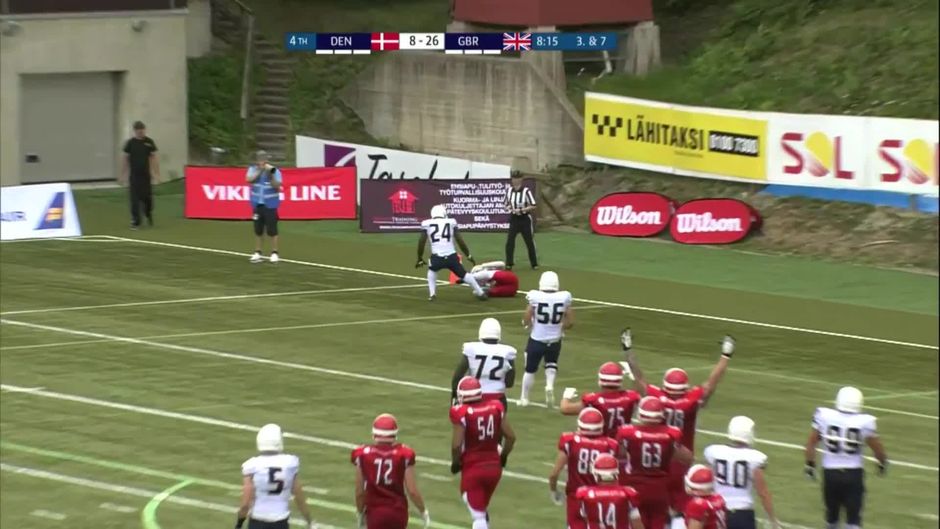 Dänermark erzielt den nächsten Touchdown und macht es nochmal spannend. Ein schöner Pass über die linke Seite.