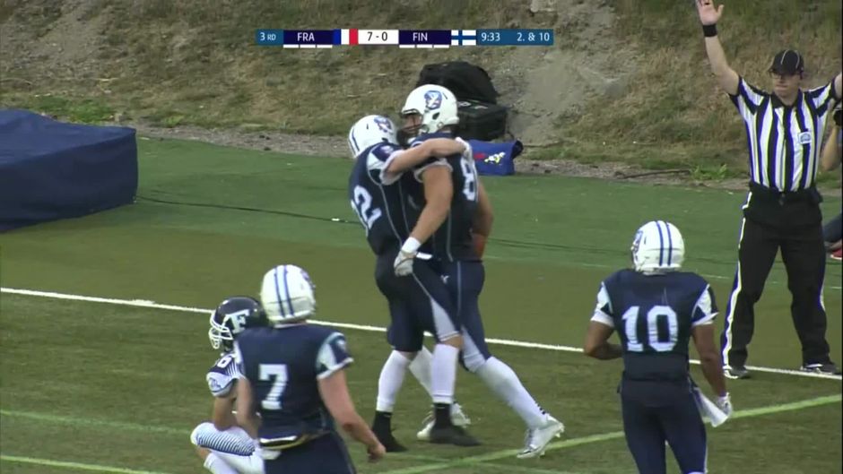 Mit dem ersten Drive der zweiten Halbzeit sind die Finnen zurück im Spiel. Ein sehenswerter Pass in die Endzone dorgt für die ersten Punkte der Finnen.