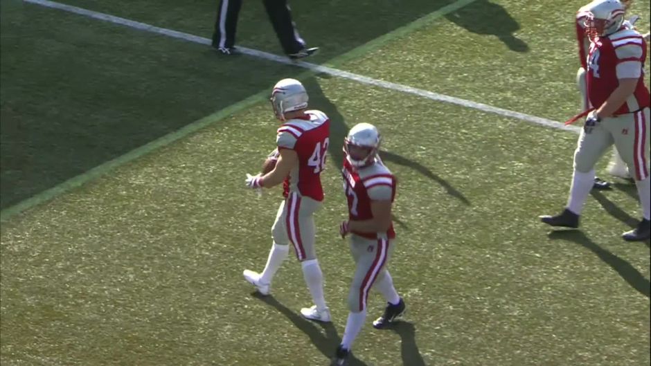 Touchdown Nummer fünf für Österreich und Nummer drei für Sandro Platzgummer im Spiel gegen Schweden bei der Football-EM in Finnland. Das klingt nach Spieler des Spiels.