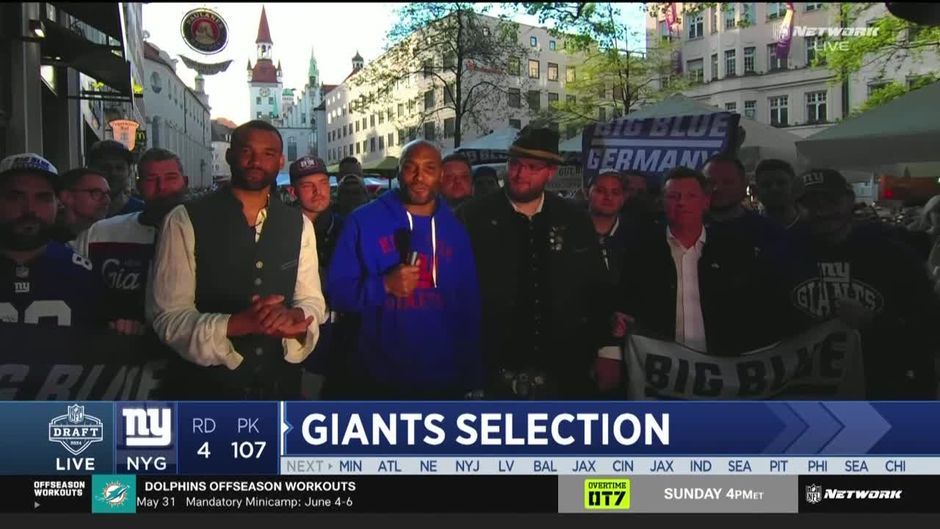 Die Fans der Giants dürfen sich auf einen neuen Tight End freuen. Theo Johnson wird von den New Yorkern an 107. Stelle ausgewählt - live aus München.