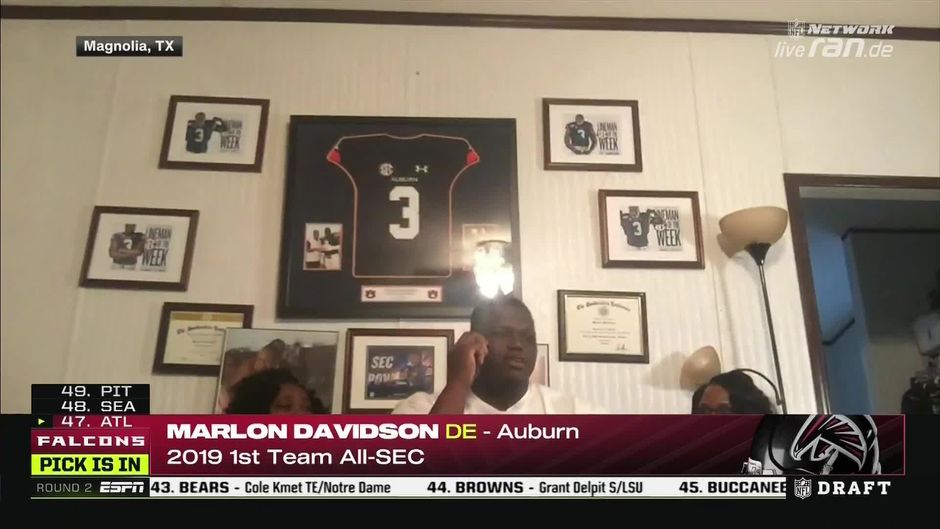 Die Atlanta Falcons sichern sich mit dem 47. Pick Marlon Davidson, Defensive End von der Auburn Universität.
