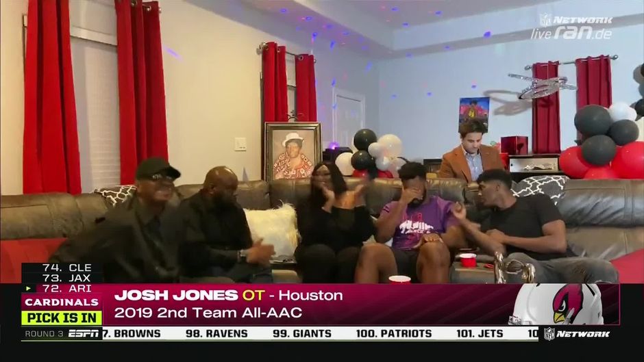 Die Arizona Cardinals sichern sich mit dem 72. Pick Offensive Tackle Josh Jones von der Houston Universität. Jones war eigentlich von vielen Experten für das ende der ersten Runde gehandelt worden.