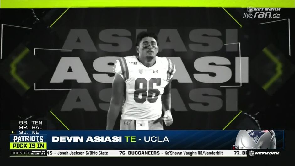 Die New England Patriots schließen mit den Seattle Seahawks einen Trade ab und sichern sich den 91. Pick. An dieser Stelle wählen die Patrios Devin Asiasi, Tight End von der UCLA Universität aus. Ein potentieller Nachfolger von Rob Gronkowski?