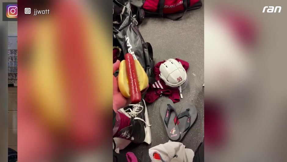 J.J. Watt genießt seinen Ruhestand in vollen Zügen. Dabei frönt er auch seiner anderen großen Liebe - dem Eishockey. Und wie sich das im Ruhestand gehört, ist auch die Hot-Dog-Maschine nicht weit weg. Nämlich direkt in der Umkleide.