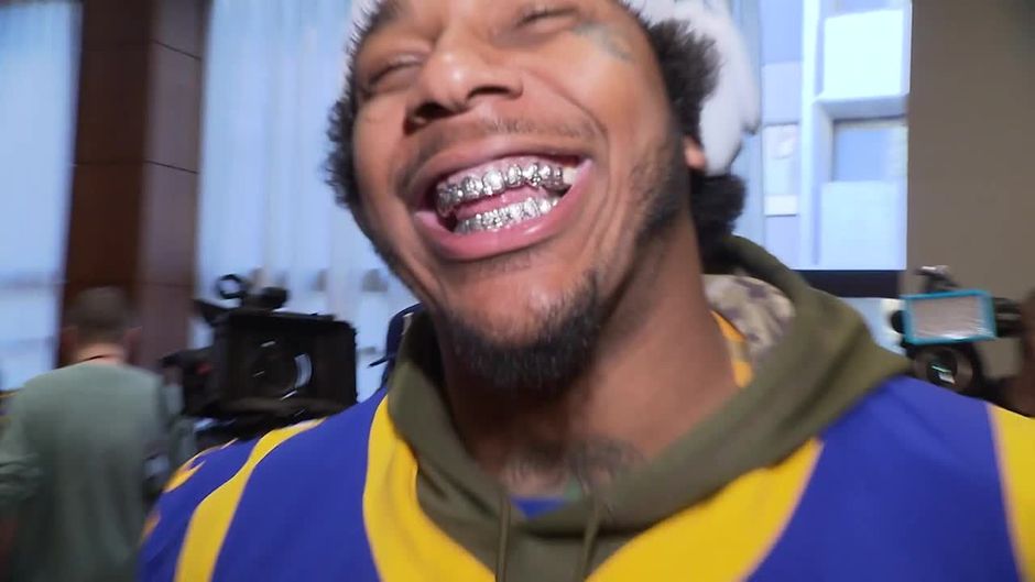 Der Defensive Lineman der Los Angeles Rams, Ethan Westbrooks, zeigt Icke seinen "Grill" und verrät was er am Samstagabend vor dem Super Bowl im TV schaut. Der Super Bowl am 3. Februar ab 22:45 Uhr live auf ProSieben und ran.de.