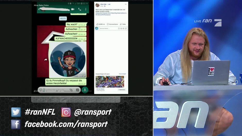 Die #ranNFL-Fans sind auch Nachts um halb vier in Hochform - und Icke freut es: "Ey du Pimmelkopf!"