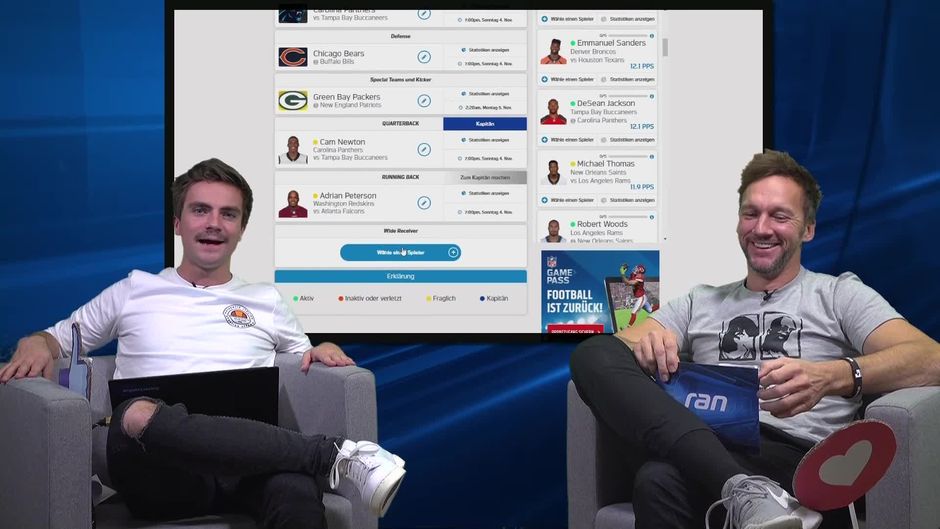 Wer sind die heißen Eisen im Fantasy Manager am 9. Spieltag der NFL? #ranNFL-Experte Volker Schenk diskutiert mit Max Zielke und dem Fantasy-Manager-Gott der ran-Online-Redaktion.