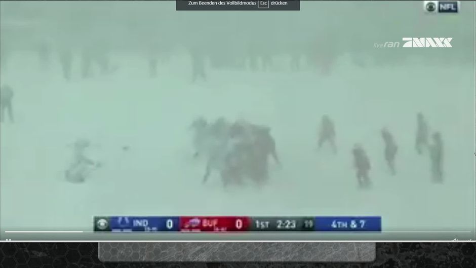 Was für ein Bild aus Buffalo! Die Bills spielen gegen die Indianapolis Colts, doch man kann das kaum Football nennen - der Wintereinbruch sorgt für ein Schneechaos im Stadion.