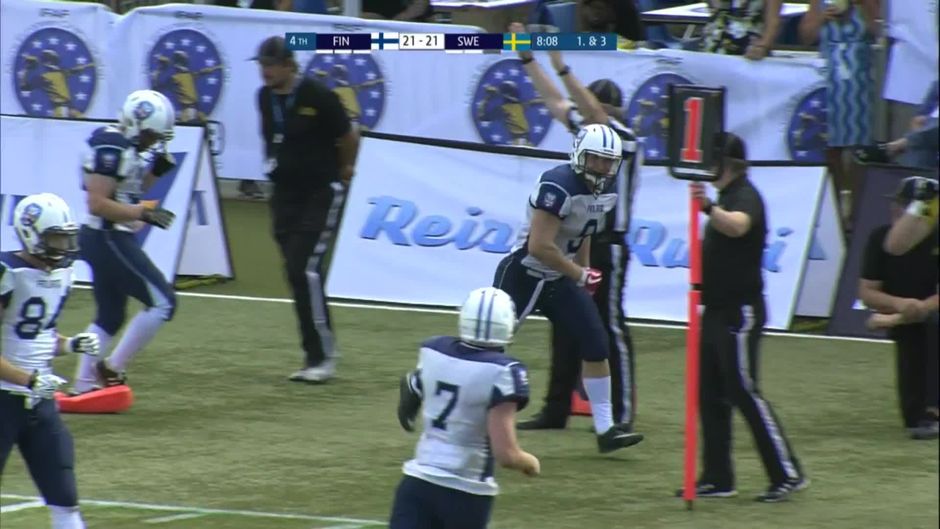 Acht Minuten vor Ende kann Finnland erneut punkten. Die Chancen auf Bronze bei der Football-EM steigen jetzt enorm.
