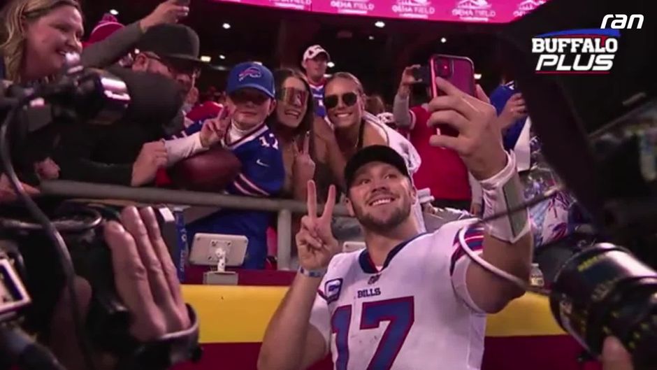 Quarterback-Star Josh Allen macht nach dem Sieg gegen die Kansas City Chiefs einen kleinen Jungen glücklich und schenkt ihm den Spielball.