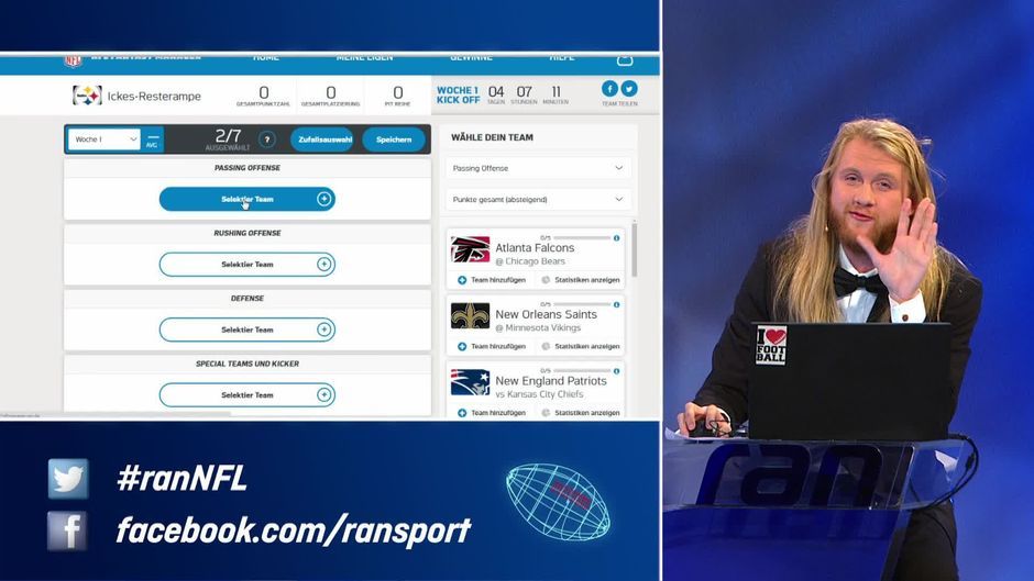 Netman Icke erklärt den neuen NFL Fantasy Manager und verkündet, was für ein Mega-Preis dem Sieger winkt. Registriere Dich jetzt beim NFL Fantasy Manager powered by ran und führe Dein Team zum Super-Bowl-Triumph.