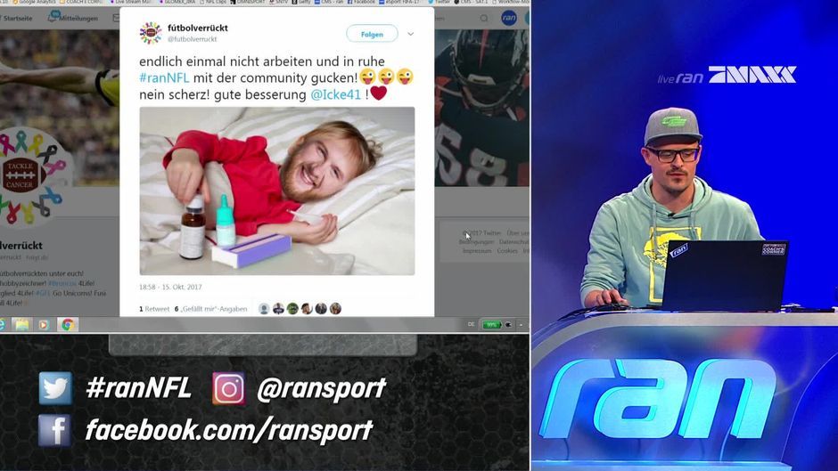 Icke muss wegen Krankheit pausieren. Ickes Mann im Ohr springt ein - und Ihr habt die besten Genesungswünsche für unseren Icke. Eine kleine Auswahl aus der #ranNFL-Community.