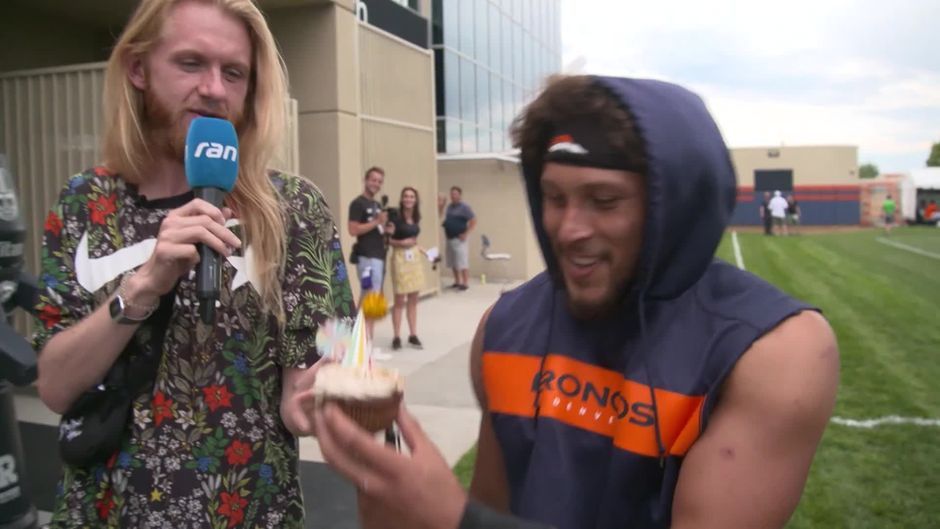 Christoph „Icke“ Dommisch besuchte die Denver Broncos in ihrem Training Camp und überraschte Geburtstagskind Philip Lindsay mit einem kleinen Ständchen.