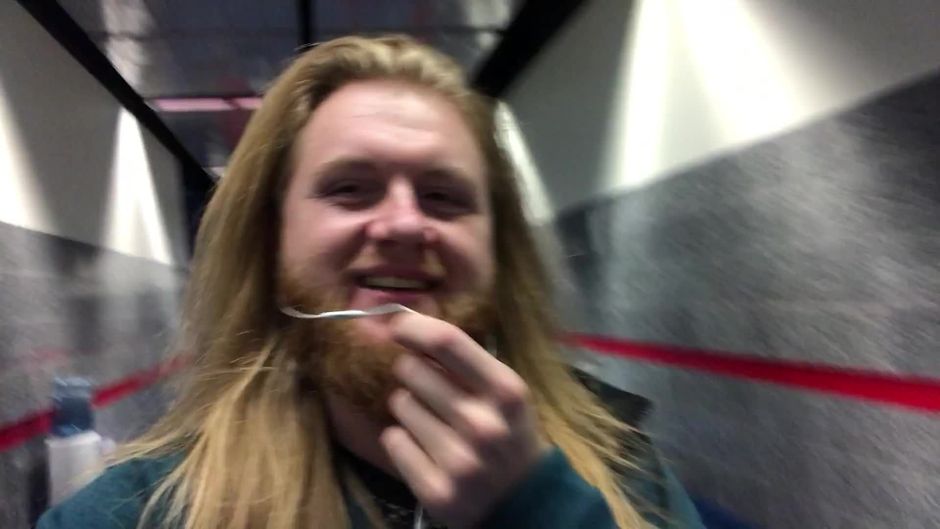 Icke feiert seinen Sieg über Markus Kuhn - mit Kaffee und Wasser. Heute führt er euch durch das Media Center vom Super Bowl 2017.
