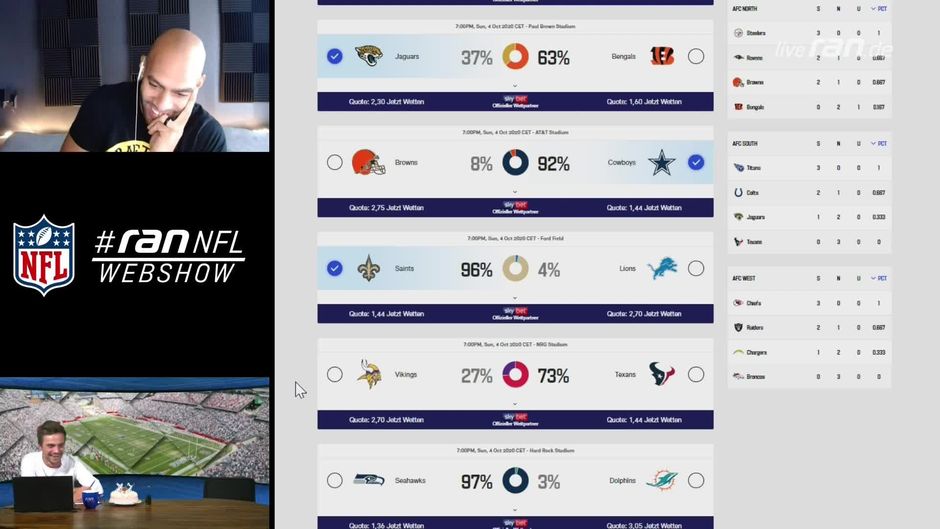 Auch in dieser Woche schauen wir in der #ranNFL-Webshow auf den kommenden NFL-Spieltag. Diese Woche zu Gast bei Max Zielke: Kasim Edebali.