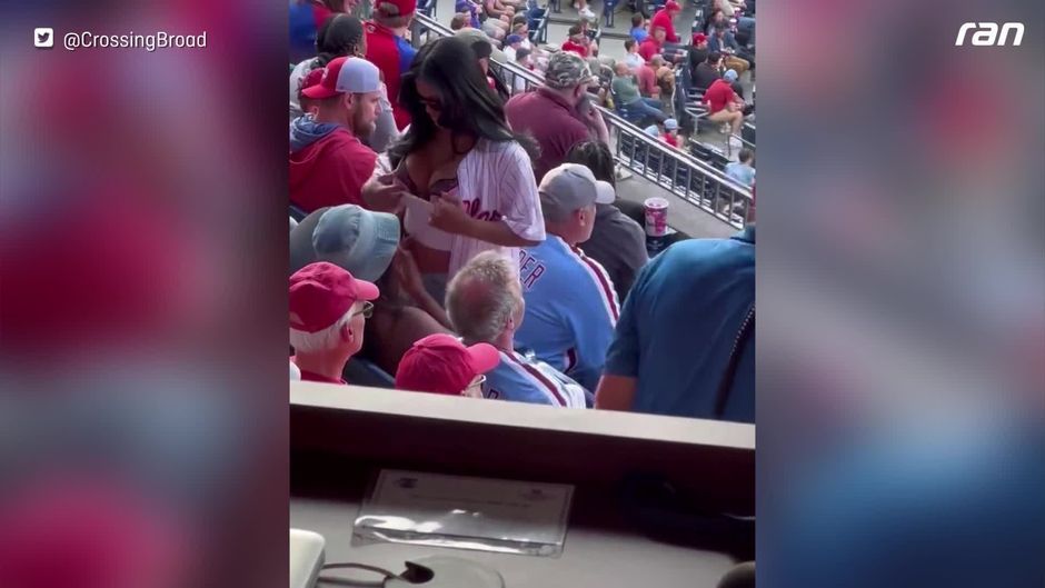 Bei einem Baseballspiel der Philadelphia Phillies sorgt eine junge Dame für Aufmerksamkeit auf der Tribüne. Sie zeigt einen Lapdance und lässt tief blicken. Die Zuschauer scheinen sie nicht zu stören.