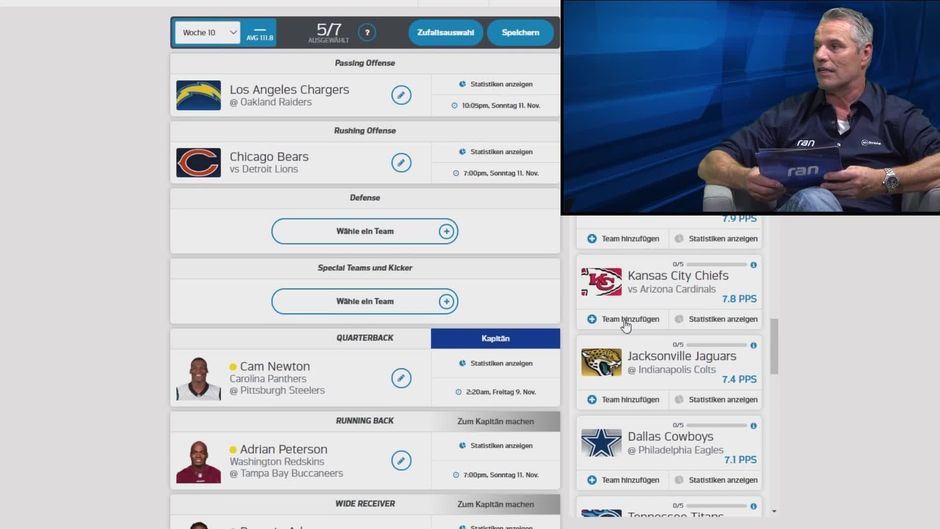 Die ranNFL-Crew arbeitet daran, beim NFL Fantasy Manager in die Top 50.000 vorzustoßen. Diesmal versucht Jan Stecker in der Webshow sein Glück. Allerdings lässt er sich auch von der Gesichtsbehaarung von Moderator Max Zielke ablenken.