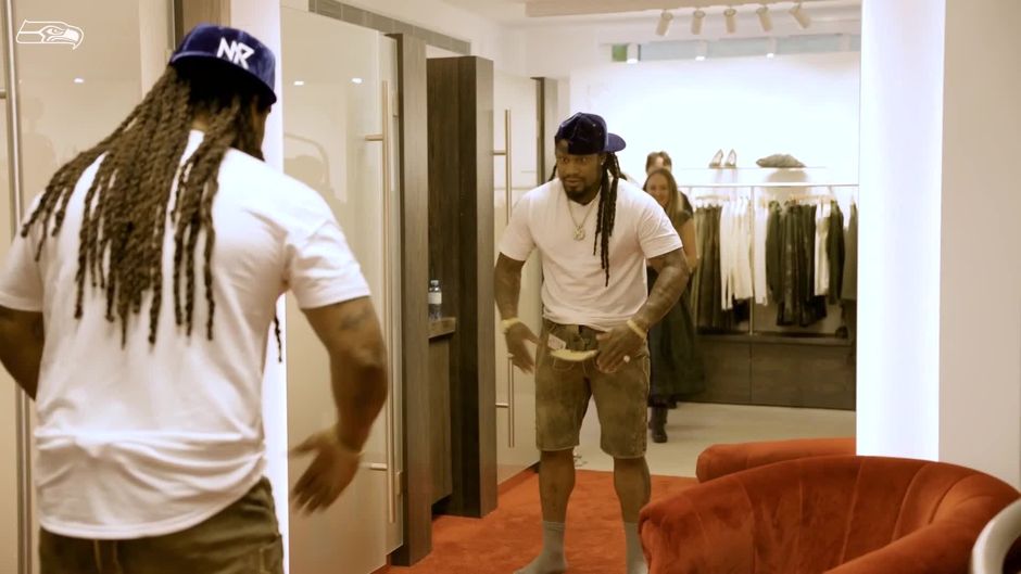 Marshawn Lynch macht vor dem NFL-Spiel der Seattle Seahawks gegen die Tampa Bay Buccaneers in München die bayrische Landeshauptstadt unsicher. Ein besuch bei einem Lederhosen-Ausstatter ist da nur obligatorisch.