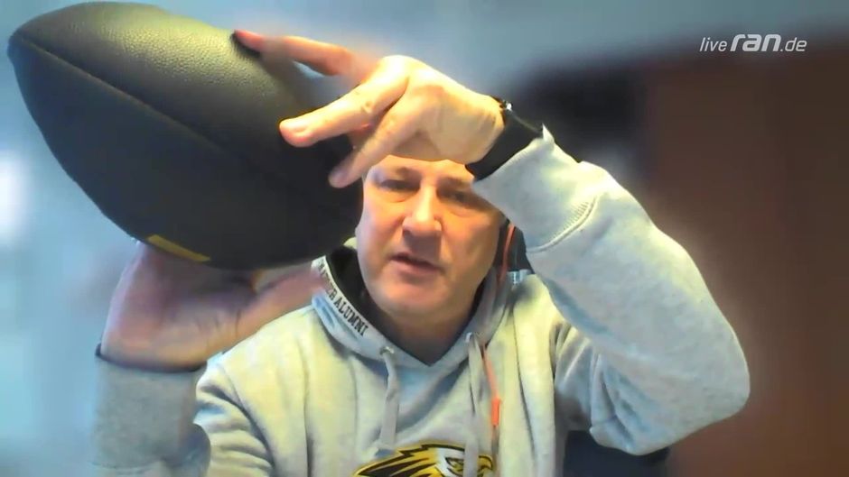 Motzkus macht es vor: Mit gebrochenem Daumen kannst du keinen Football werfen!