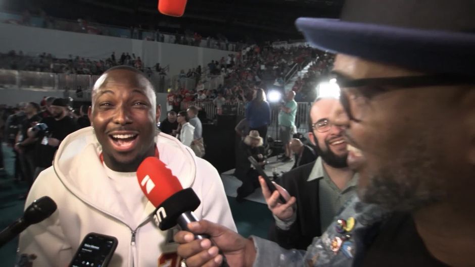 LeSean McCoy erkennt im ran-Interview Patrick Esume aus alten Zeiten wieder und zeigt sich sichtlich überrascht.