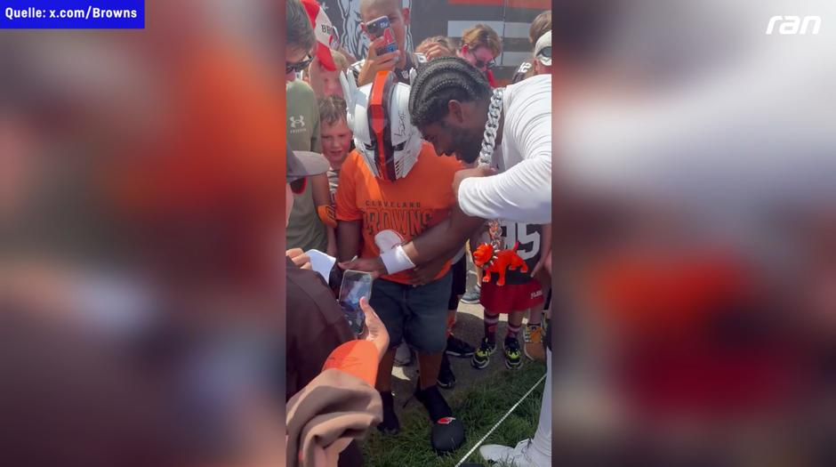 Shedeur Sanders wird von den Fans der Cleveland Browns mächtig gefeiert. Der Quarterback möchte der neue Starter bei der Mannschaft aus Ohio werden und kommt speziell bei den kleinen Fans super an.