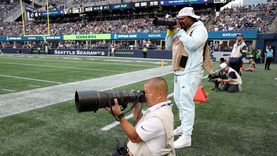 Welche NFL-Legende versteckt sich hier hinter der Kamera und fotografiert beim Preseason-Spiel Seattle Seahawks gegen Las Vegas Raiders?