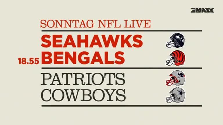 Auch am 7. Oktober zeigen ProSieben MAXX und ran.de wieder zwei Spielen live. Diesmal mit den Teilnehmern des vergangenen Super Bowls: DIe Seattle Seahawks bei den Cincinnati Bengals und die New England Patriots reisen zu den Dallas Cowboys.